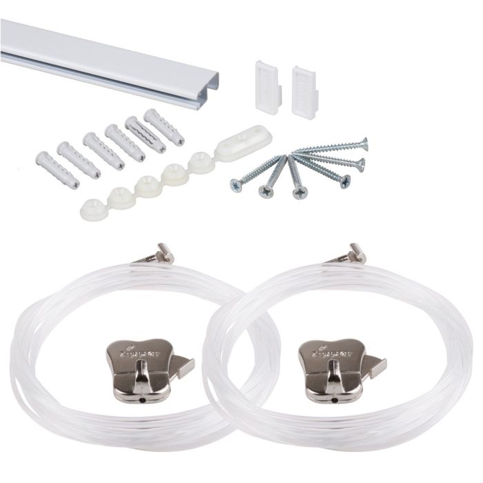 STAS cliprail pro white 59" | 150 cm - complete kit, including 2 clear cords 59" with STAS zipper